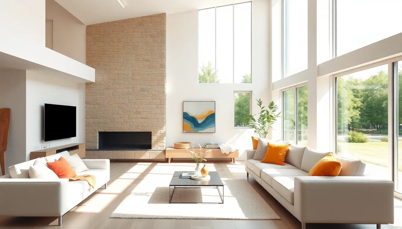 Natural light integration plays a crucial role in modern home design. Large windows create brightness and warmth, reducing reliance on artificial lighting. Skylights often enhance this effect, offering a unique way to invite sunlight. Well-placed windows link indoor and outdoor spaces, promoting a sense of connection with nature. Homeowners benefit from improved mood and energy efficiency through thoughtful placement of light sources.
